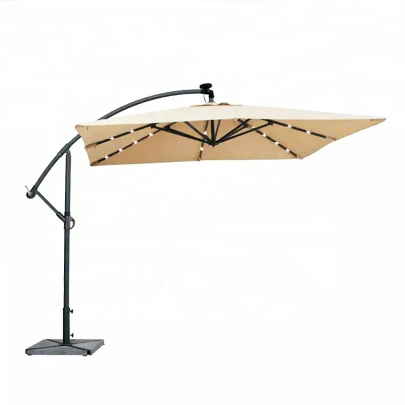 Modern dış mekan şemsiyeleri de LED ışıklarla tasarlanıyor ve bu da onları daha popüler hale getiriyor. Gündüzleri normal olarak kullanılabildiği gibi gece kullanımlarında da kolaylık ve konfor sağlarlar. Bu LED ışıklar şemsiye çerçevesine eşit olarak dağıtılarak bu loş gecede yumuşak bir şekilde parlıyor, parlak ışık efektleri sağlıyor, akşam esintisinin tadını çıkarmanız için romantik ve şiirsel bir dış mekan ortamı yaratıyor.