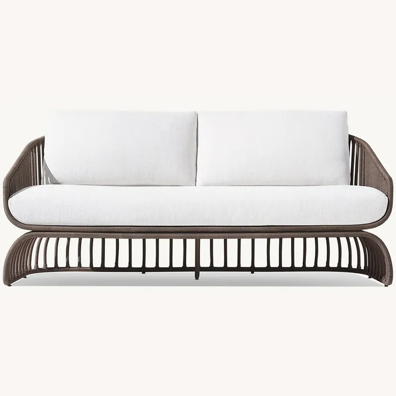 Yarı Daire Patio Kanepemiz sadece bir mobilya parçasından daha fazlasıdır; herhangi bir dış mekanı lüks bir dinlenme alanına dönüştürebilen çok yönlü bir merkez parçasıdır. Yarı daire düzeni, bahçe manzaralarını çerçevelemek veya daha geniş alanlar içinde samimi alanlar yaratmak için idealdir ve bu da onu verandalar, güverteler veya havuz kenarı konumları için mükemmel bir seçim haline getirir. Zarif kıvrımları ve şık tasarımı, onu rustikten modern minimaliste kadar her türlü dış mekan dekor stilini tamamlayan öne çıkan bir parça haline getirir.