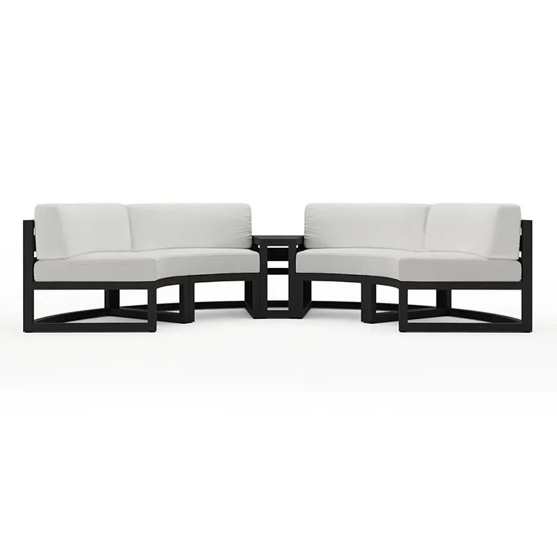 Dayanıklı alüminyumdan üretilen yarı yuvarlak dış mekan kanepesi uzun ömürlüdür ve bakımı kolaydır. Dayanıklılığı ve pas ve korozyona karşı direnciyle bilinen alüminyum, dış mekan mobilyaları için mükemmel bir seçimdir ve yatırımınızın tüm hava koşullarında en iyi durumda kalmasını sağlar. Alüminyum çerçeve aynı zamanda hafiftir ve her türlü dış mekan toplantısına veya estetik tercihe uyacak şekilde kolayca yeniden düzenlenebilir.